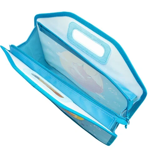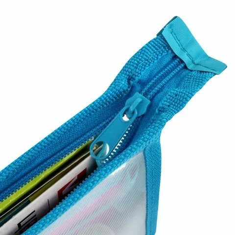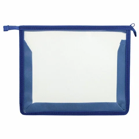 Папка для тетрадей ПИФАГОР А5, пластик, молния сверху, прозрачная, синий, 272115