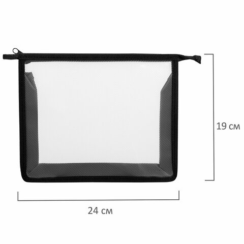 Папка для тетрадей ПИФАГОР А5, пластик, молния сверху, прозрачная, черный, 272113