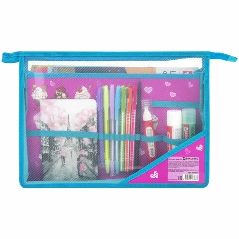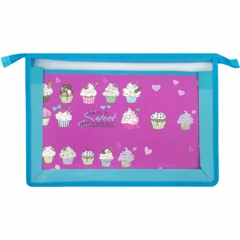 Папка для труда BRAUBERG А4, 2 отделения, пластик, молния сверху, органайзер, 'Cup Cakes', 229134