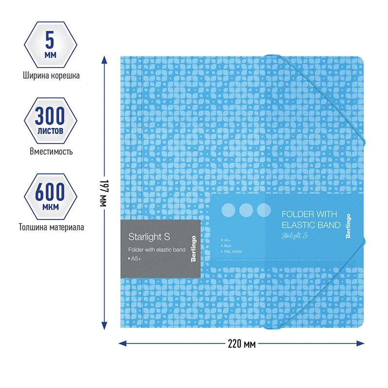 Папка для тетрадей на резинке Berlingo 'Starlight S' А5+, 600мкм, голубая, с рисунком