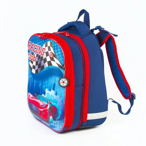Ранец BRAUBERG PREMIUM, 2 отделения, с брелоком, дополнительный объем, для мальчиков, 'Гоночный клуб