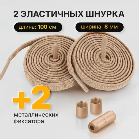 Шнурки плоские эластичные БЕЖЕВЫЕ длина 100 см, ширина 8 мм, 2 капсулы бежевого цвета, SHEGRA (ШЕГРА