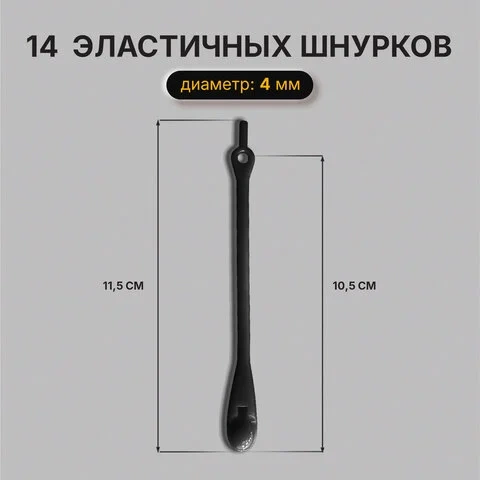 Шнурки силиконовые ЧЕРНЫЕ 14 шт., диаметр 4 мм, SHEGRA (ШЕГРА), 701719