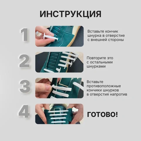 Отлично подходят как для взрослых, так и для детей. Не развязываются и предотвращают падения. Стильный белый цвет и лаконичный дизайн делают их универсальным аксессуаром для любой обуви.Инструкция по использованию