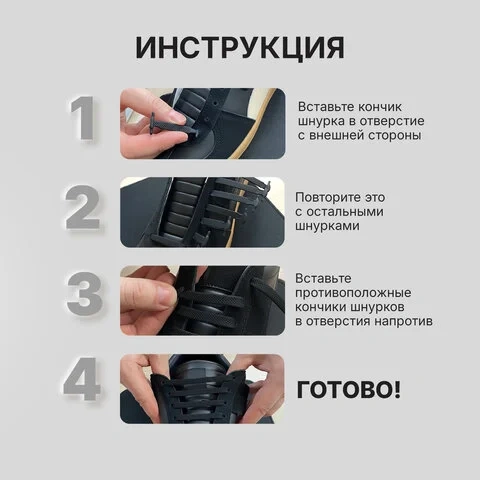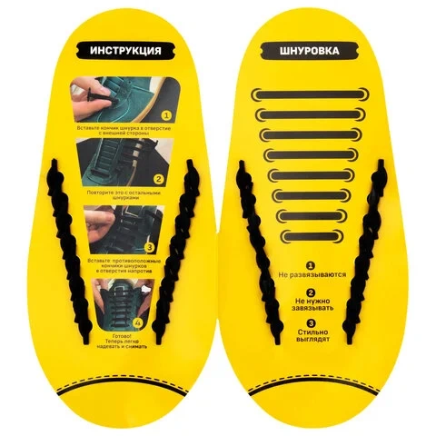 Отлично подходят как для взрослых, так и для детей. Не развязываются и предотвращают падения. Стильный черный цвет и лаконичный дизайн делают их универсальным аксессуаром для любой обуви.Инструкция по использованию
