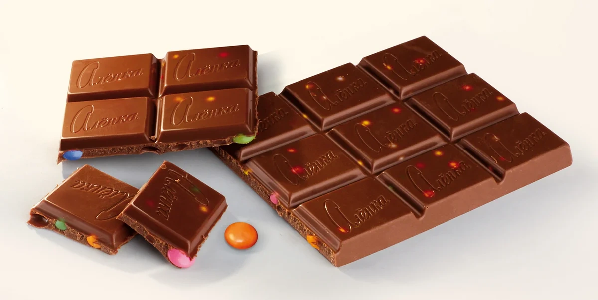 Шоколад Аленка Красный Октябрь молочный с драже, 90 г – это вкусное лакомство, которое готовят по оригинальной рецептуре. В ней используется базовый состав знаменитой шоколадки, который дополнен начинкой. Для изготовления плитки используются высококачественные продукты. Основным ингредиентом является какао. Оно поднимает настроение, заряжает энергией, обеспечивает зарядом бодрости и стимулирует работу головного мозга. В нем содержится триптофан. Это вещество стимулирует выработку гормона удовольствия, серотонина, который устраняет признаки депрессии и улучшает общее состояние. Шоколад станет отличным дополнением к чаю, кофе, сокам и другим напиткам (газированным, кисломолочным, холодным и горячим). Его можно подать в качестве десерта после основных блюд или как самостоятельное лакомство. Несколько кусочков шоколада заменят завтрак или ланч. Они отлично утолят голод. Плитка может стать отличным презентом для знакомых или коллег по работе. Конфеты и шоколад – неотъемлемая часть подарка на Новый год. Им обрадуются взрослые и маленькие сладкоежки. К тому же конфеты – отличная альтернатива калорийным пирожным и тортам и хорошая идея для похода в гости. Хранить шоколадные изделия рекомендуется в дали от прямых солнечных лучей и в помещении с влажностью не более 75%. Так продукт не потеряет своих вкусовых и ароматических качеств. Бренд Аленка входит в состав холдинга Объединенные кондитеры. Он выпускает высококачественную продукцию с хорошо знакомыми и новыми вкусами. На производстве используется современные технологии и новейшее оборудование.