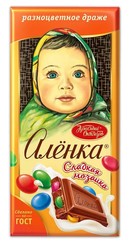 Любимая Алёнка. Сладкая мозаика - шоколадка, поднимающая настроение до небес! Яркие вспышки разноцветного драже будто веселые огоньки просвечивают сквозь полумрак молочного шоколада. Тающая нежная текстура плитки дополняется задорным хрустом сахарной глазури. Чуть более сладкая, чем классическая Алёнка Сладкая мозаика способна скрасить самый хмурый день.