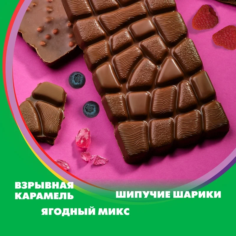 Шоколад Alpen Gold Max Fun Ягоды-карамель-шипучие шарики молочный, 140г