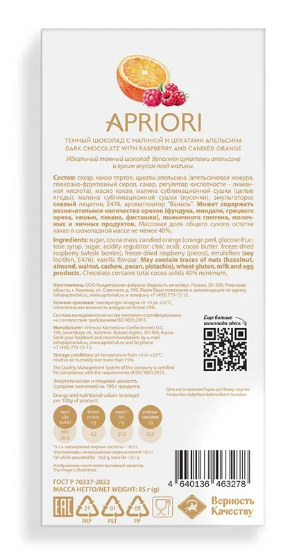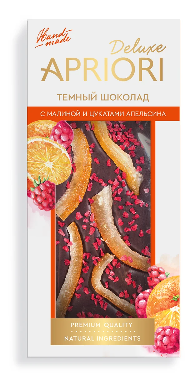 Шоколад Априори Deluxe темный с малиной и цукатами апельсина, 85г