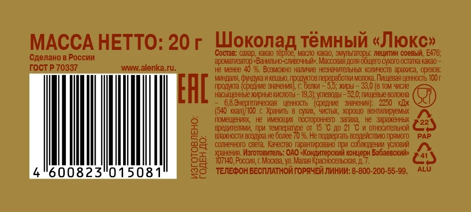 | Бренд | бабаевский |