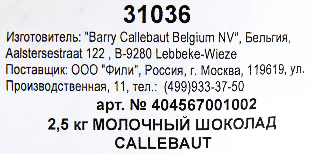 | Бренд | Barry Callebaut |