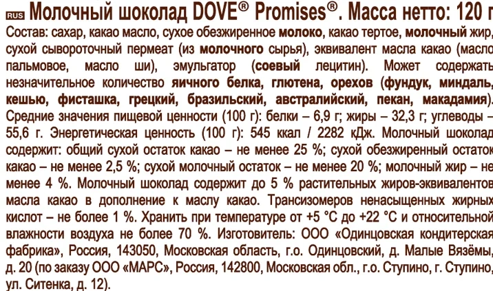 Шоколадные конфеты Dove нежные как шелк: такие же обволакивающие, роскошные, соблазнительные. Почувствуйте, как нежная текстура шоколада тает во рту, даря неповторимое ощущение. Dove изготовлен только из высококачественных натуральных ингредиентов и 100% какао.15 шоколадных конфет из молочного шоколада с волнующими посланиями внутри. Настоящий шоколад из 100% отборного какао. Подарочная упаковка - оцените шоколадные конфеты сами или сделайте роскошный комплимент своим близким, коллегам и друзьям. Упаковка может иметь несколько видов дизайна. Поставка осуществляется в зависимости от наличия на складе. Набор в яркой подарочной коробке из картона. Содержит 15 миниатюрных шоколадных плиток. На каждой обертке из фольги нанесены послания-комплименты. Изделия имеют классический молочный вкус, не содержат добавок и наполнителей.