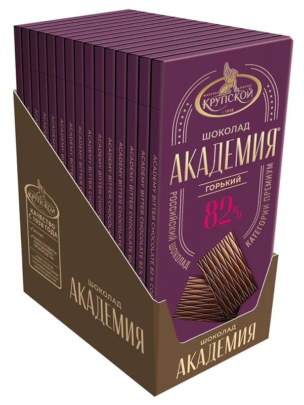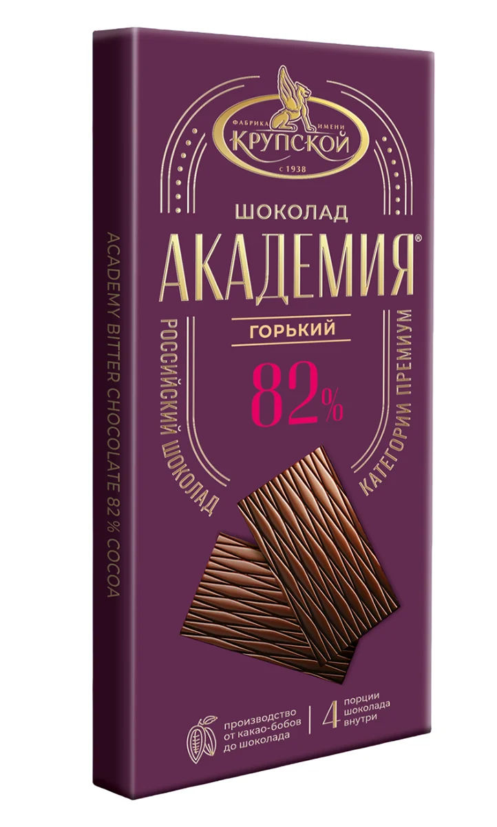 Шоколад Кондитерская фабрика Крупской горький Академия 82% какао, 88г