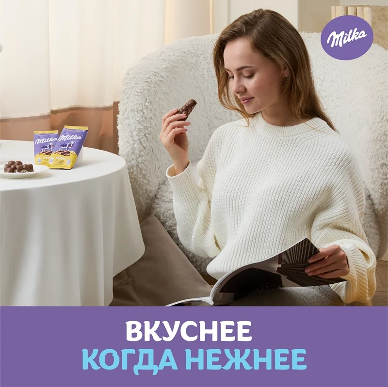 Milka Bubbles — это нежный пористый шоколад с вкуснейшей банановой начинкой и элегантными йогуртовыми нотками. Шоколад молочный изготовлен из какао высокого качества с добавлением альпийского молока, поэтому он тает во рту и раскрывает нежность в каждом, кто его пробует! Молочный шоколад Milka Bubbles обладает воздушной текстурой, которую дополняет прослойка с насыщенным бананово-йогуртовым вкусом. Нежность шоколада, яркие нотки йогурта и банана — идеальное сочетание для невероятного наслаждения и беззаботного летнего настроения! Шоколад пористый прекрасно дополнит завтрак, станет отличным вариантом для быстрого перекуса и сладким угощением для семейного вечера. Шоколад подойдет к чаю, кофе и другим напиткам. Его удобно брать с собой на работу, учебу, в дорогу и на природу. Шоколад Milka с начинкой — это не только сладость к чаю. Это простой способ напомнить близким о своих чувствах, подарить им заботу и нежность. Преподнесите шоколадку в подарок любимому человеку, чтобы наполнить его день искренним теплом. Создавайте приятные моменты вместе с Milka!