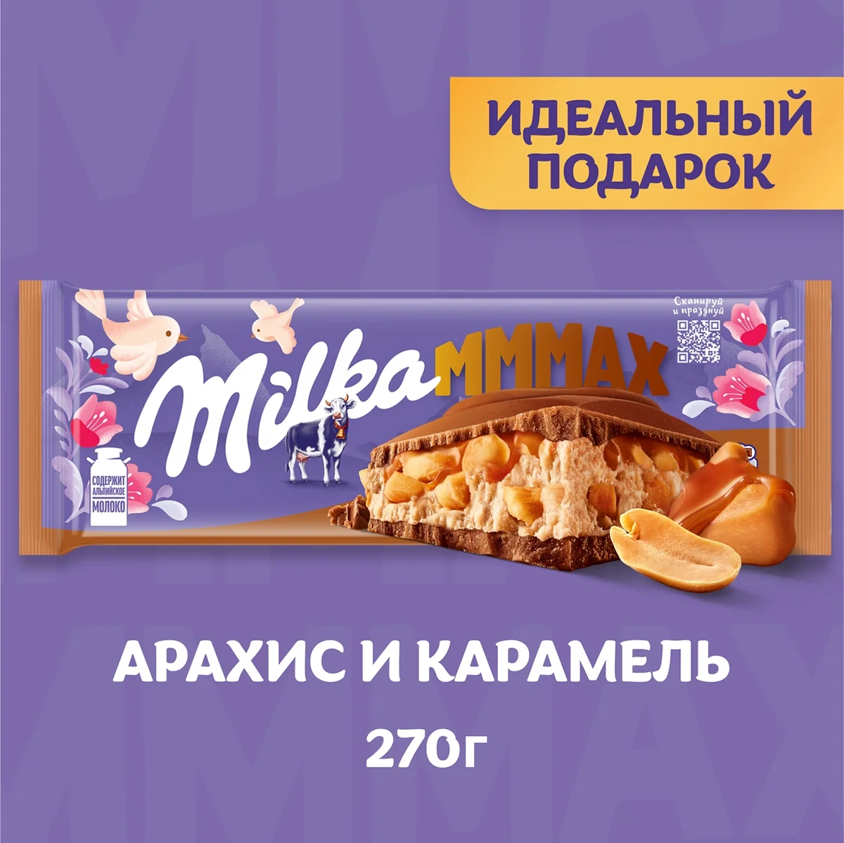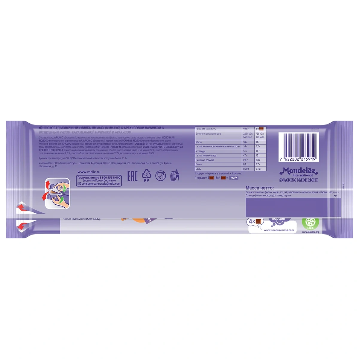 Шоколад Milka Mmmax молочный с воздушным рисом карамелью и арахисом, 270г