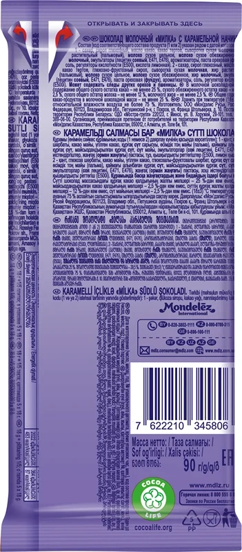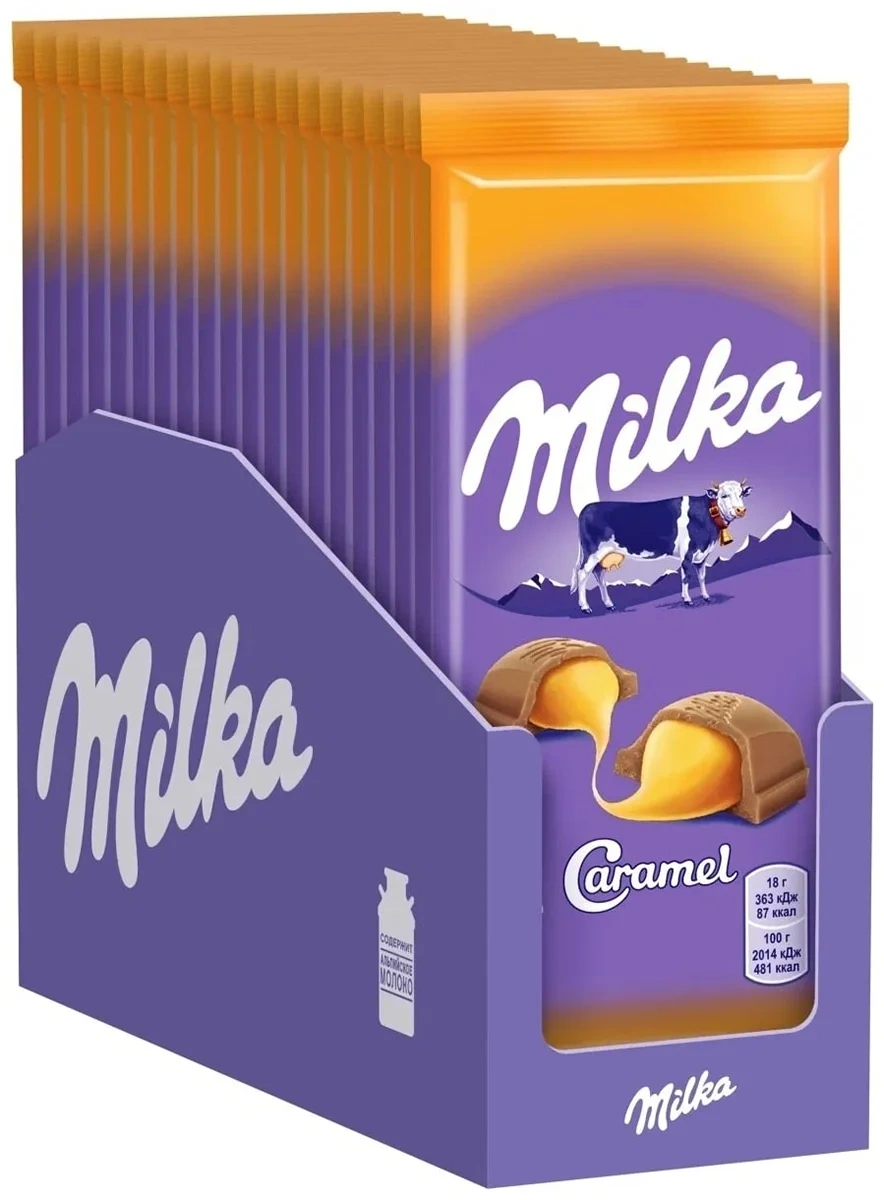 Шоколад Milka молочный с карамельной начинкой, 90г x 20 шт