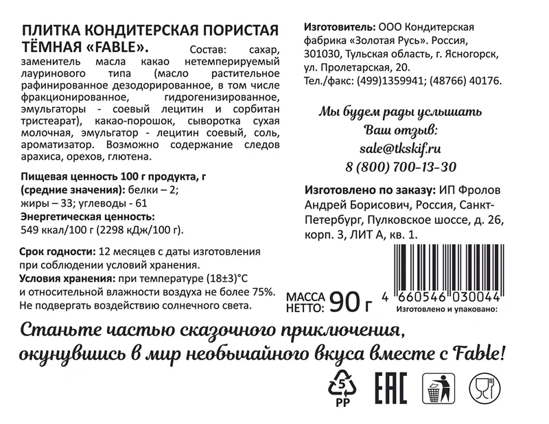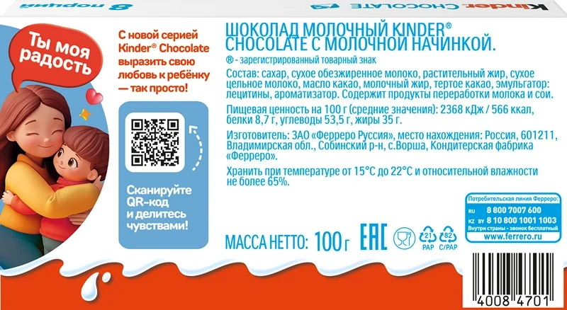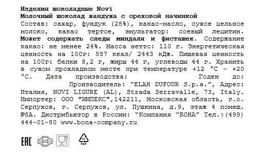Сахар, какао тертое, масло какао, сыворотка сухая молочная, молоко сухое цельное, жир молочный, молоко сухое обезжиренное, эмульгаторы (лецитин соевый, Е476), ароматизатор.