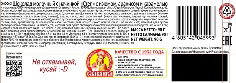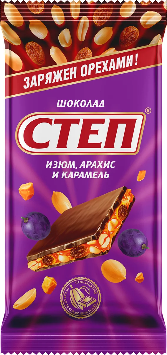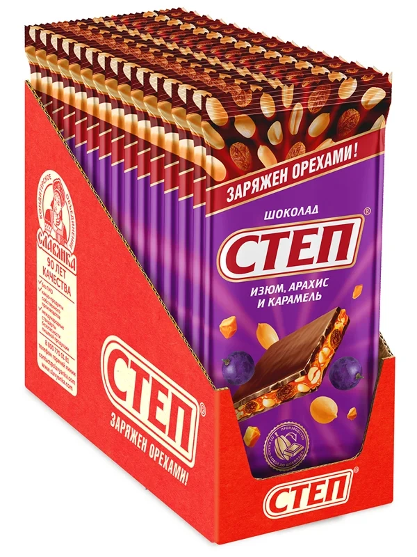 Шоколад молочный Степ Изюм-арахис-карамель, 90г