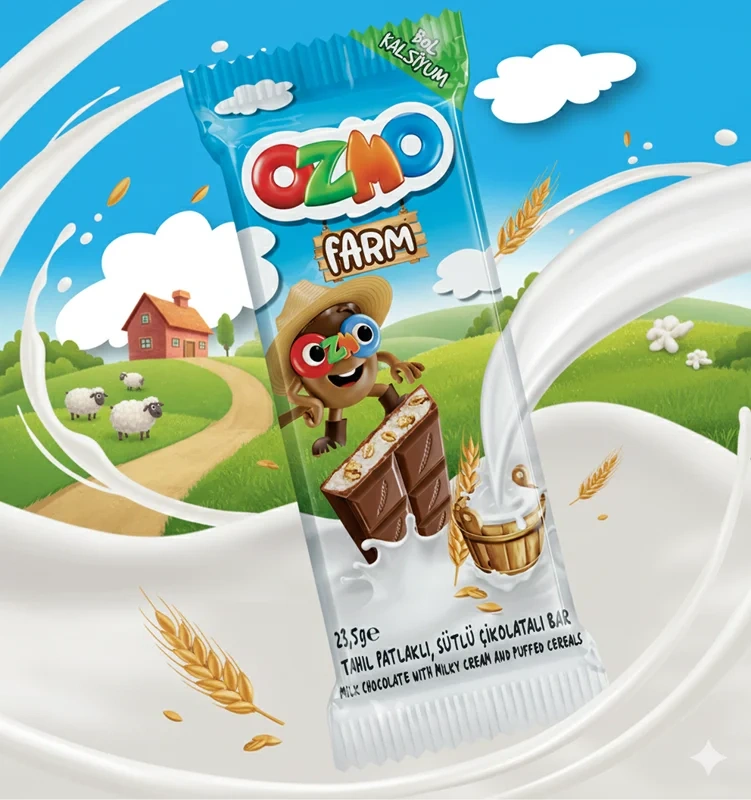 Ozmo Farm с молочной начинкой и злаками - молочный шоколад, изготовленный в Турции. Он прекрасно подойдет для перекуса, а также в качестве десерта к любимому горячему напитку. Злаки гармонично дополняют нежную начинку и добавляют свои нотки вкусу шоколада. А еще они делают текстуру лакомства приятно хрустящей и обогащают его полезными элементами, особенно необходимыми детскому организму. Небольшую плитку удобно брать с собой, чтобы подкрепиться на прогулке, учебе или в дороге.