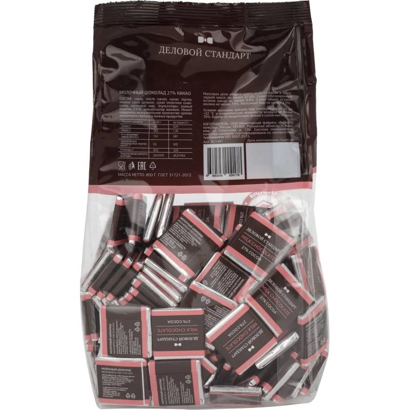 Шоколад порционный Деловой Стандарт молочный 27%, 5г/160шт