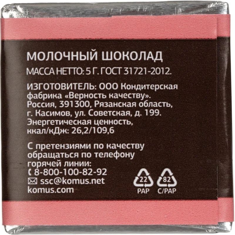| Вид шоколада | молочный |