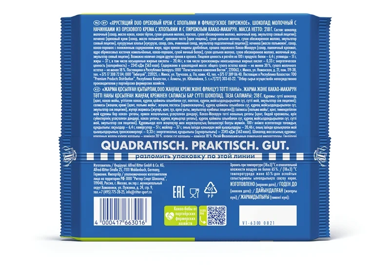 Шоколад Ritter Sport Duo молочный хрустящий, 218г