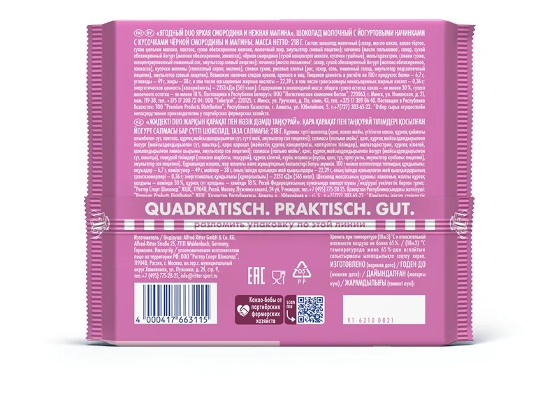 Шоколад Ritter Sport Duo молочный ягодный, 218г