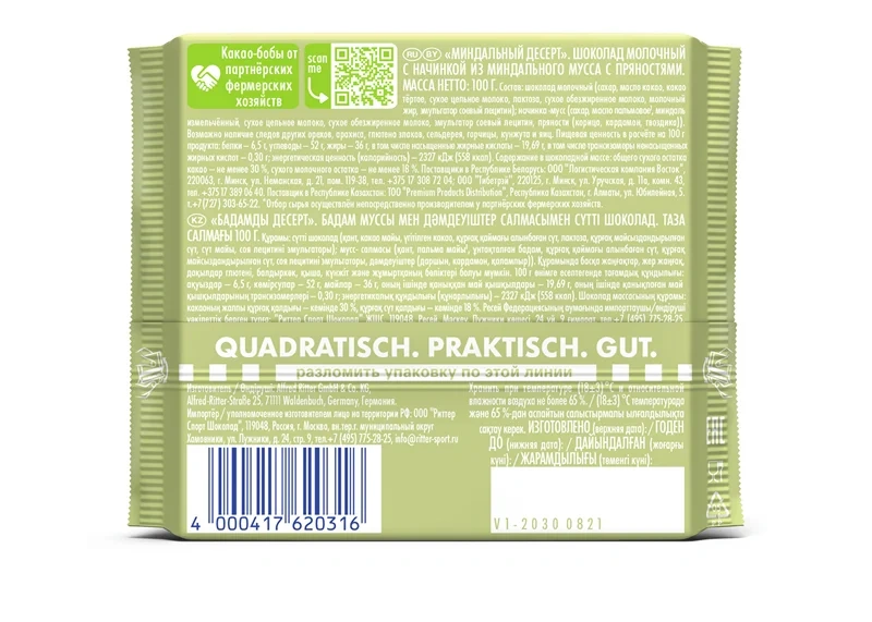 Шоколад Ritter Sport молочный миндальный десерт, 100г