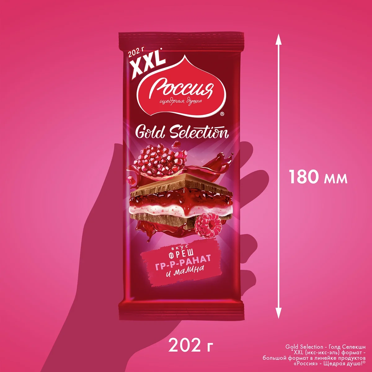 Шоколад Россия Щедрая душа Gold Selection молочный гранат, 202г