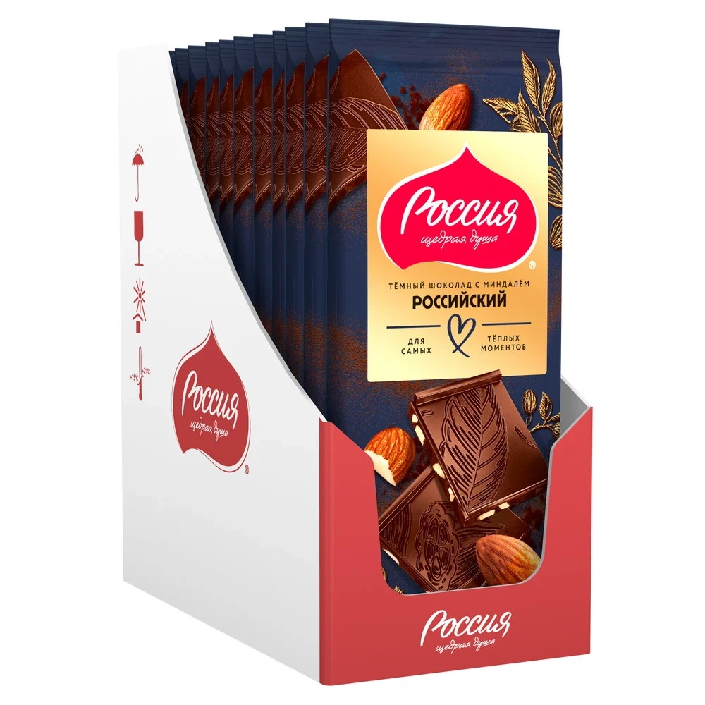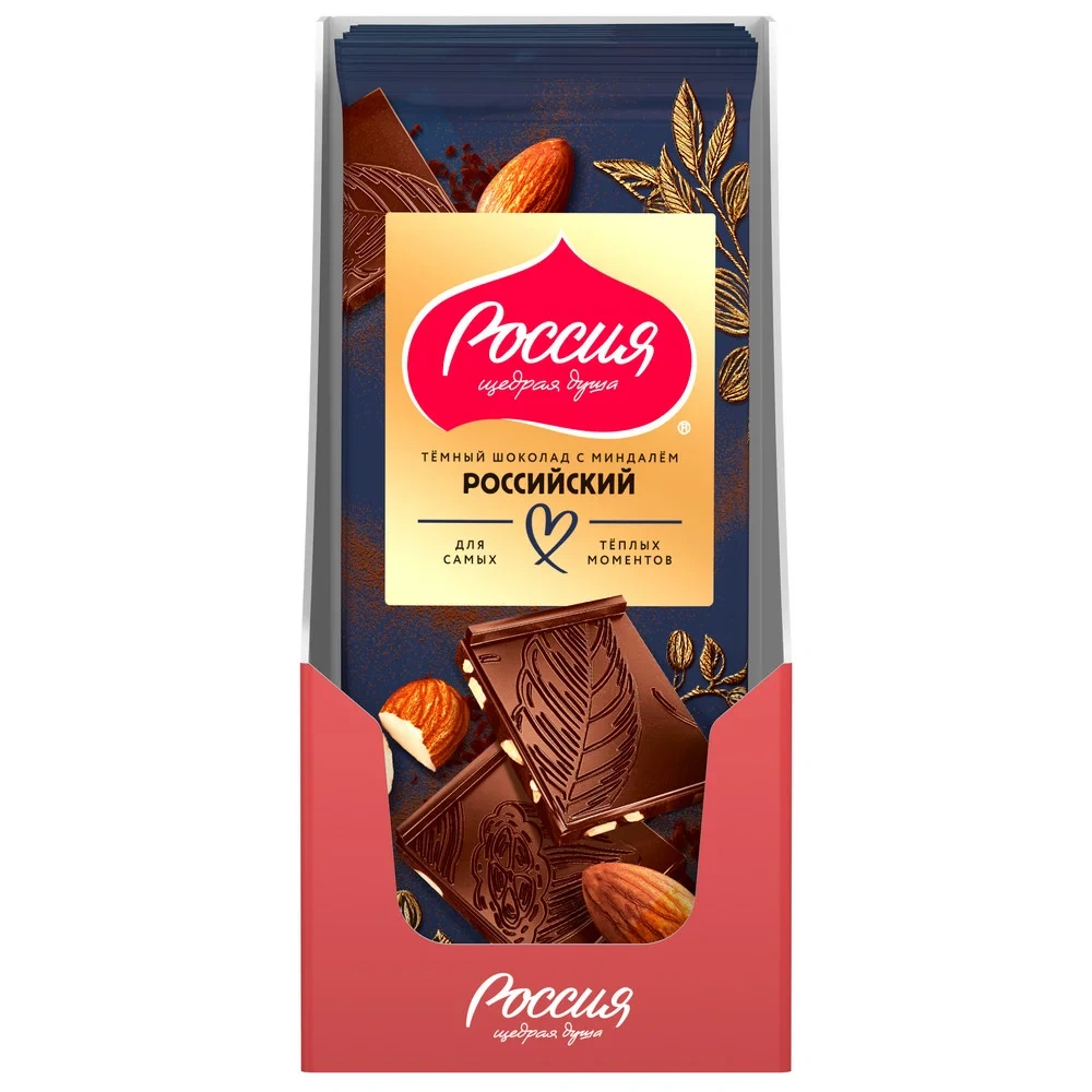 Шоколад Россия Щедрая душа темный с миндалем, 75г
