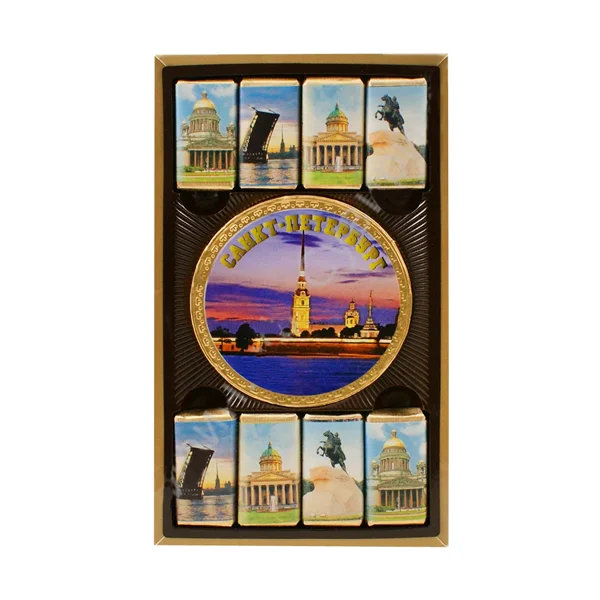 Набор шоколадок с медалью Мосты Исааки Казанский Петр 1 СПб 65г