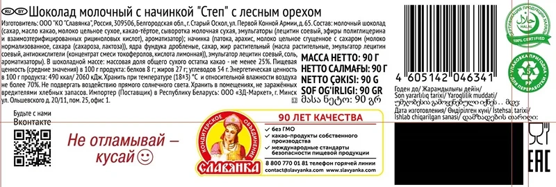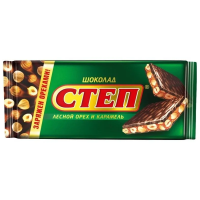 Молочный шоколад 'Степ' с начинкой из густой карамели и дробленых ядер лесного ореха - уникальная плитка, которая не делится на дольки. Продукт отлично подойдёт не только к чаепитию, но также может выступать в роли самостоятельного лакомства. Насыщенный шоколадно-карамельный вкус никого не оставит равнодушным.