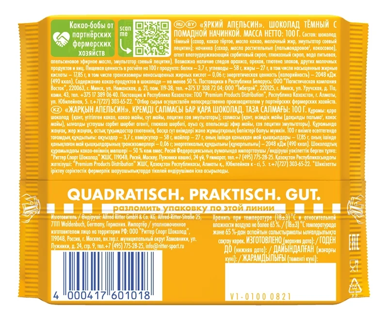 Шоколад темный Ritter Sport Яркий апельсин, 100г
