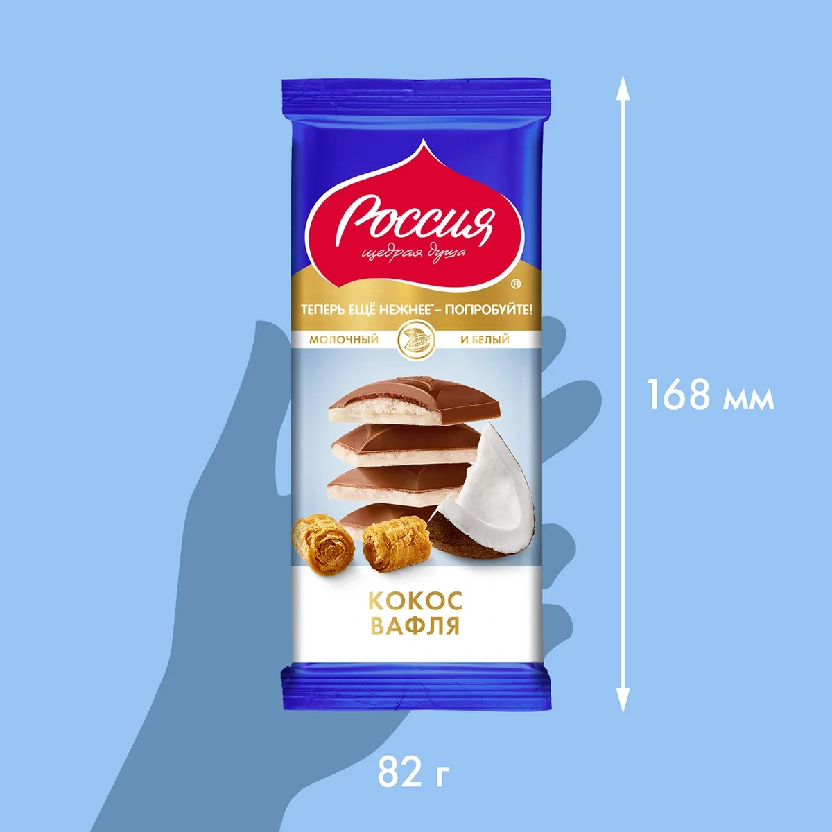 Шоколад Россия Щедрая Душа молочный и белый с кокосом, 82г