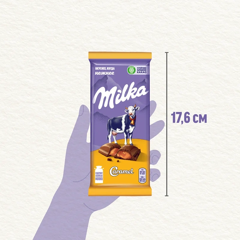 Шоколад Milka молочный с карамельной начинкой, 90г x 20 шт