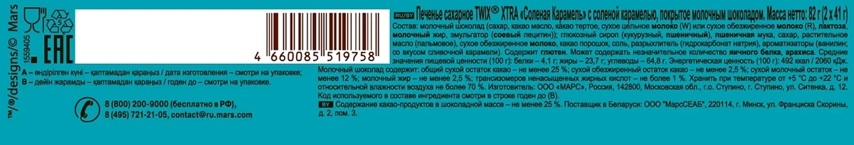 Батончик шоколадный Twix Xtra Cоленая карамель, 82г х 24 шт
