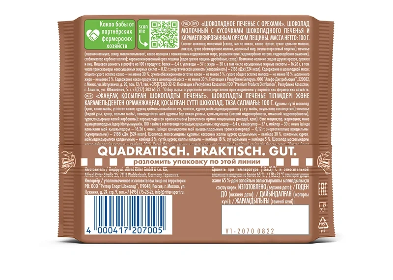 Шоколад Ritter Sport шоколадное печенье с орехами, 100г