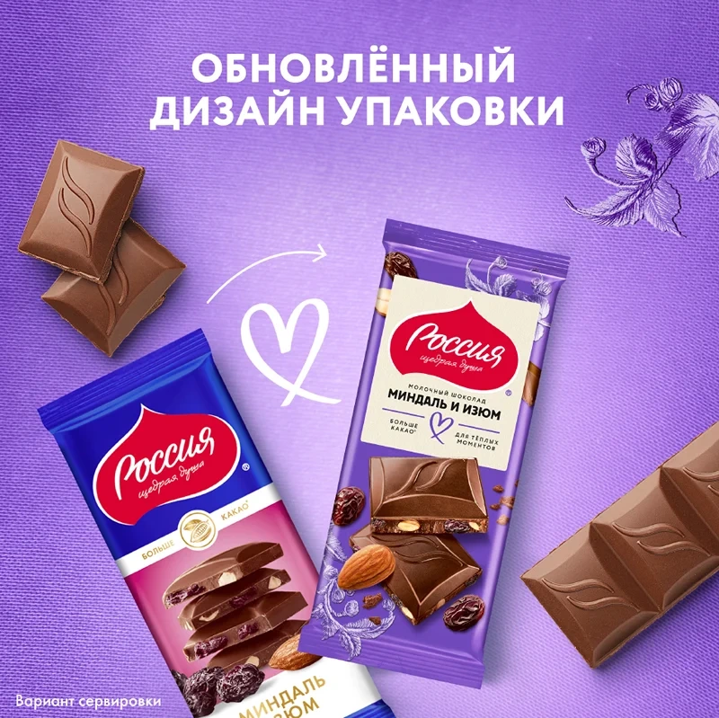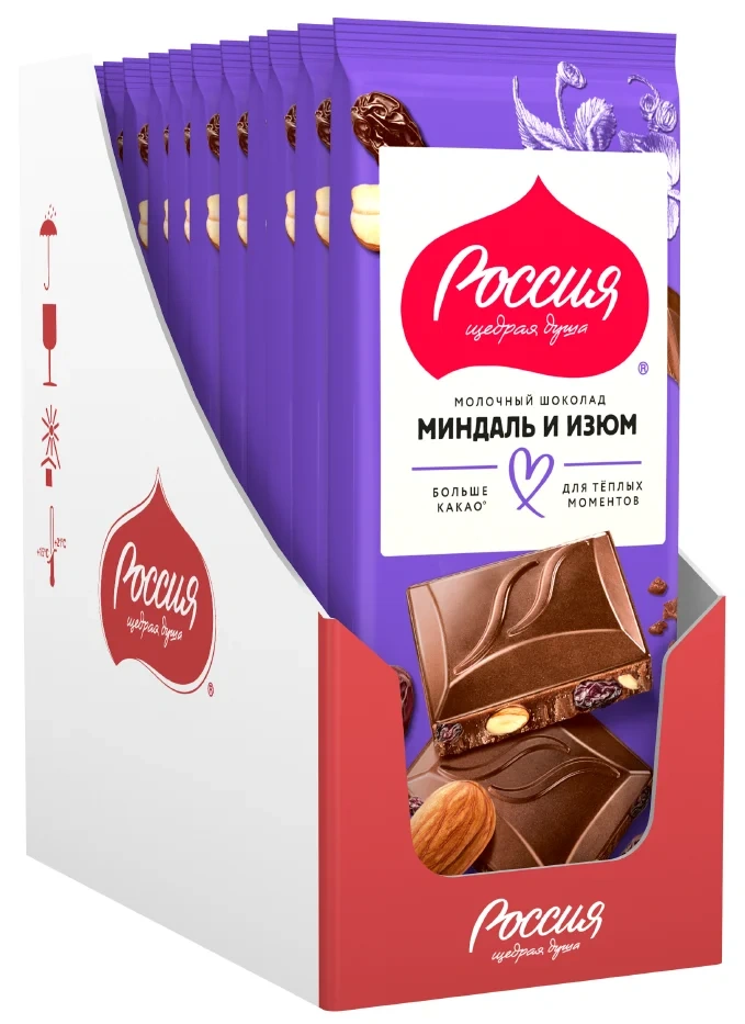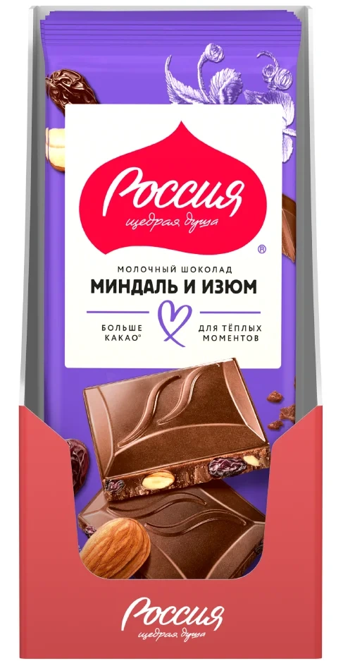 Шоколад Россия Щедрая душа молочный миндаль с изюмом, 75г