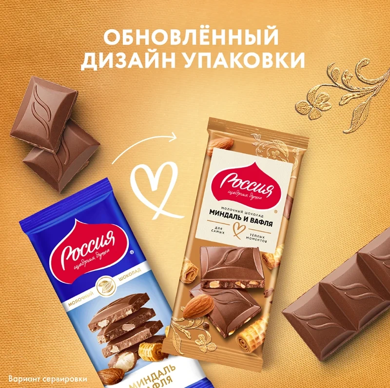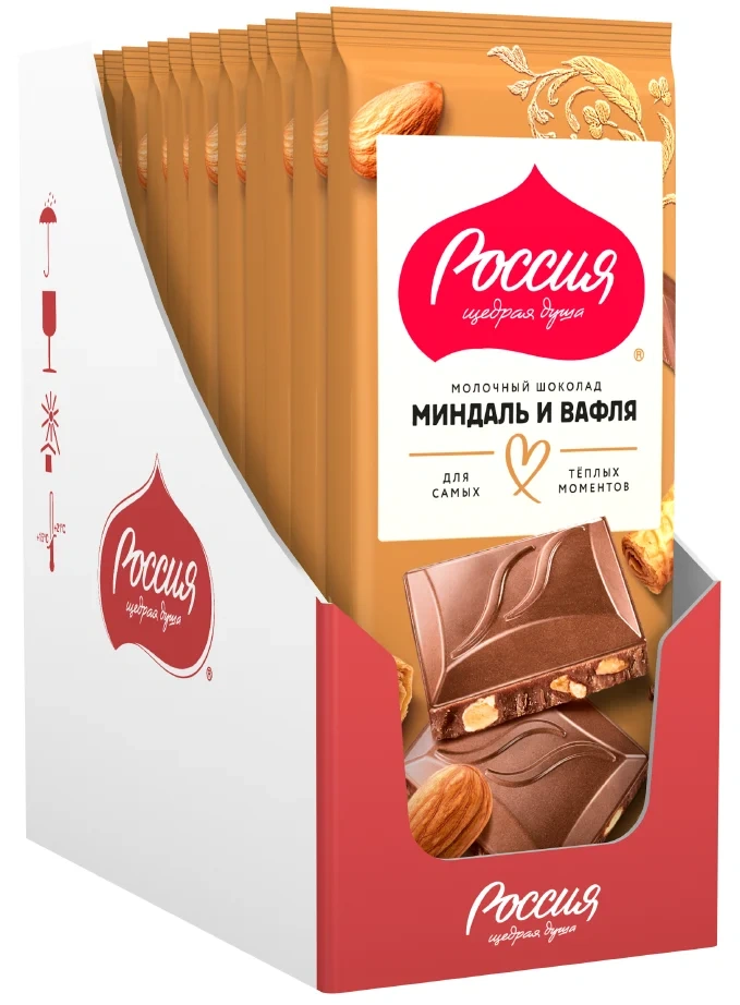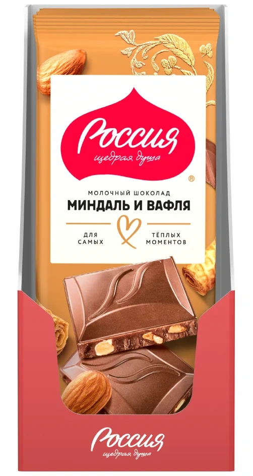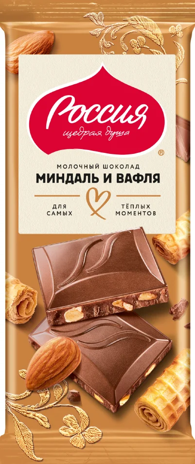 Шоколад Россия Щедрая душа молочный миндаль с вафлей, 75г