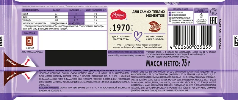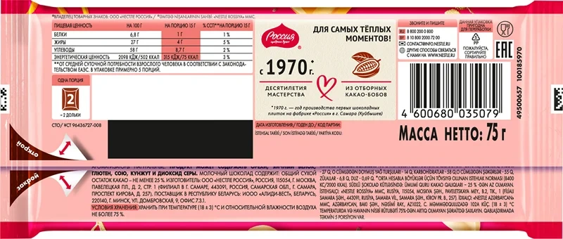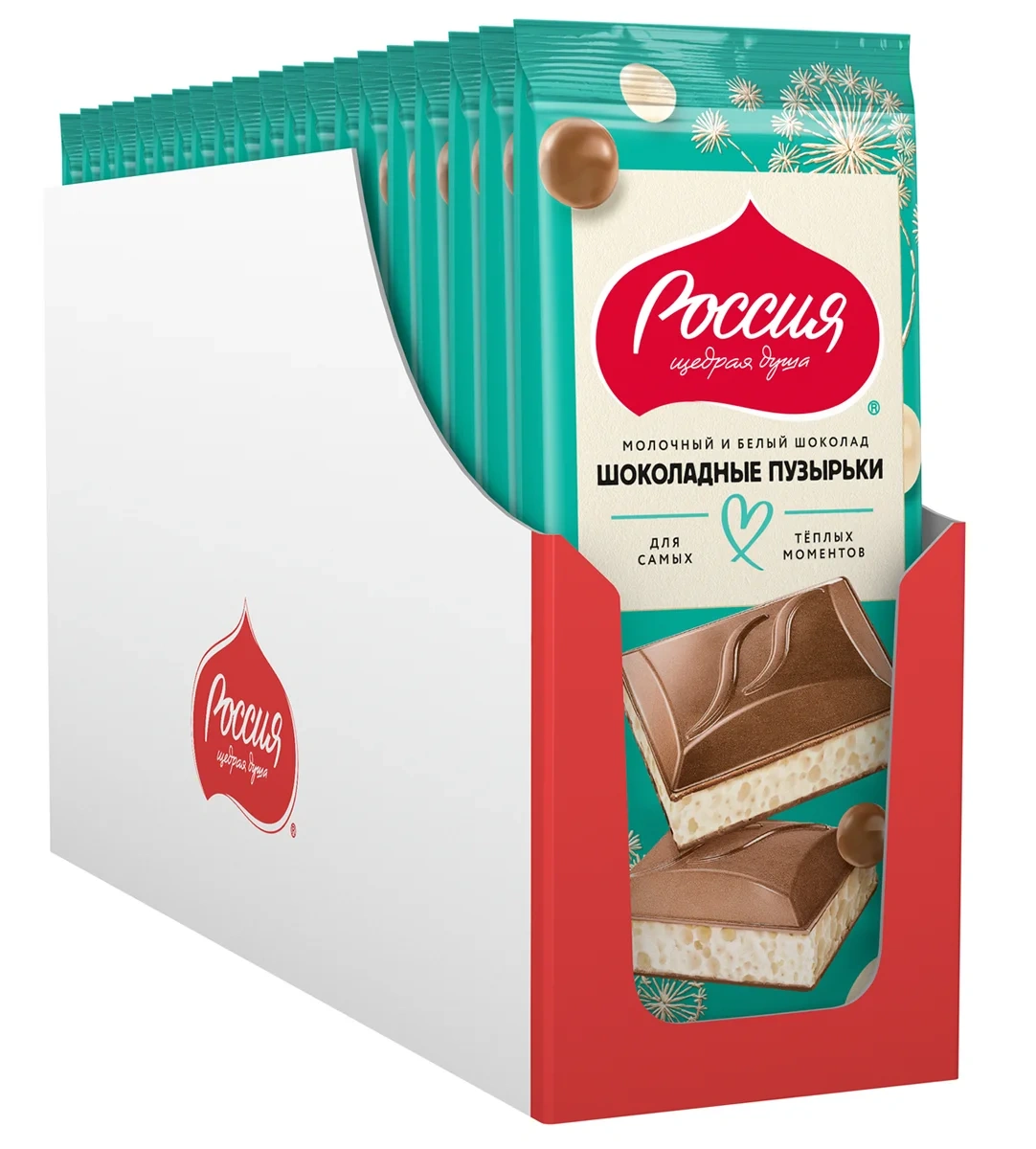 Шоколад Россия Щедрая душа молочный и белый шоколадные пузырьки, 70г