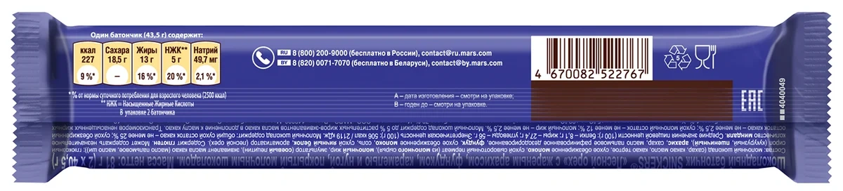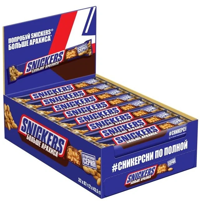 Батончик шоколадный Snickers Больше арахиса, 81г