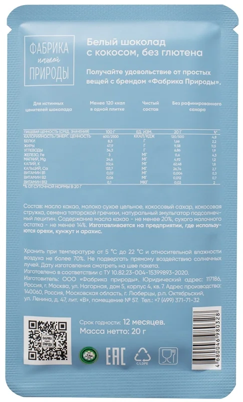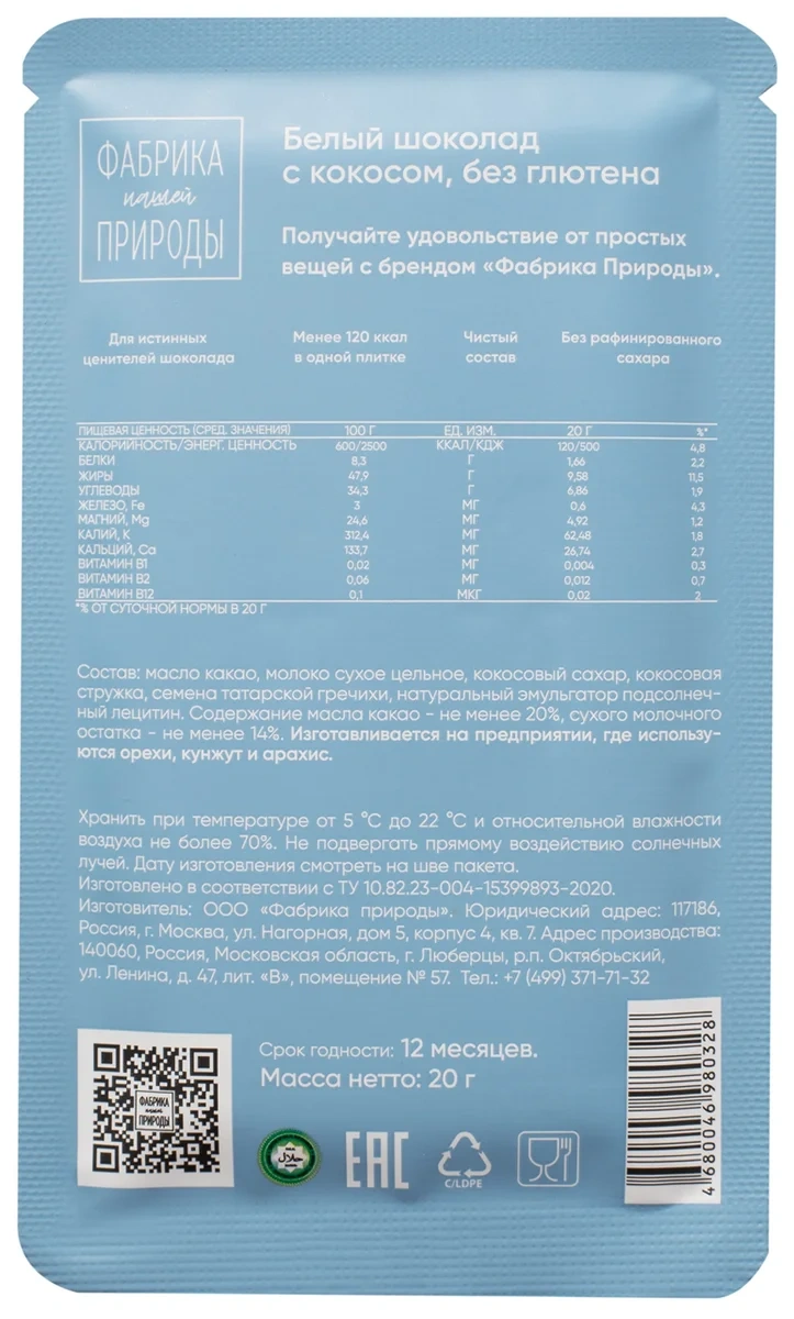 Шоколад Nature's Own Factory Кокос, гречишный, 24г