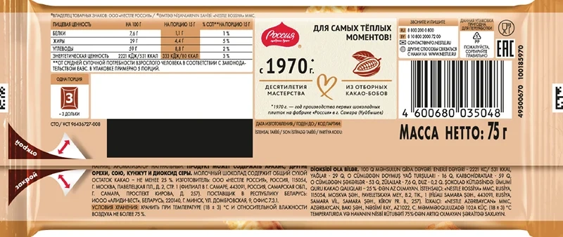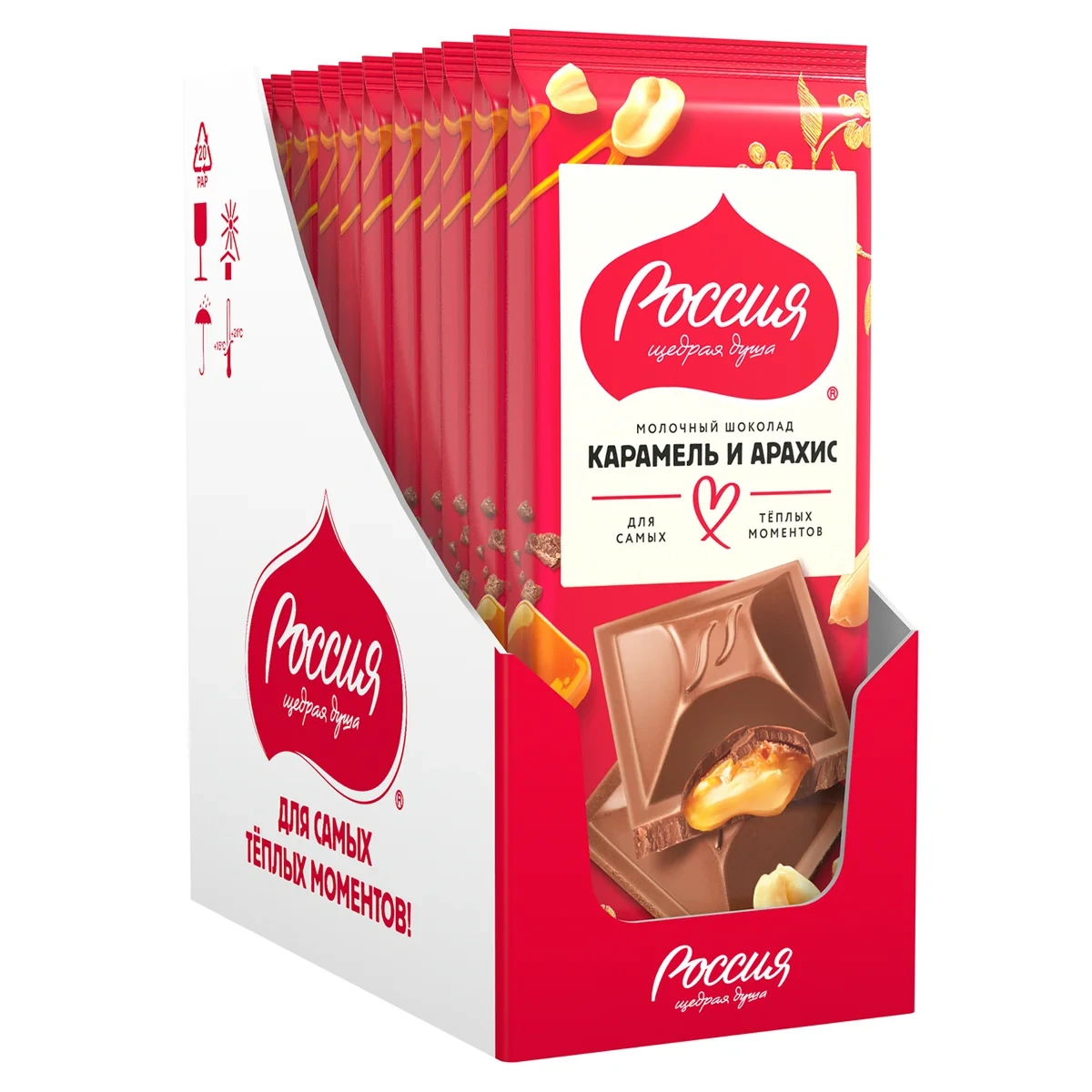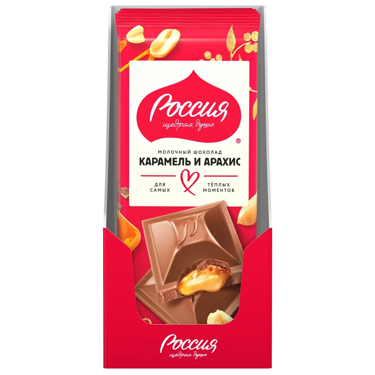 Шоколад Россия Щедрая душа молочный карамель с арахисом, 75г