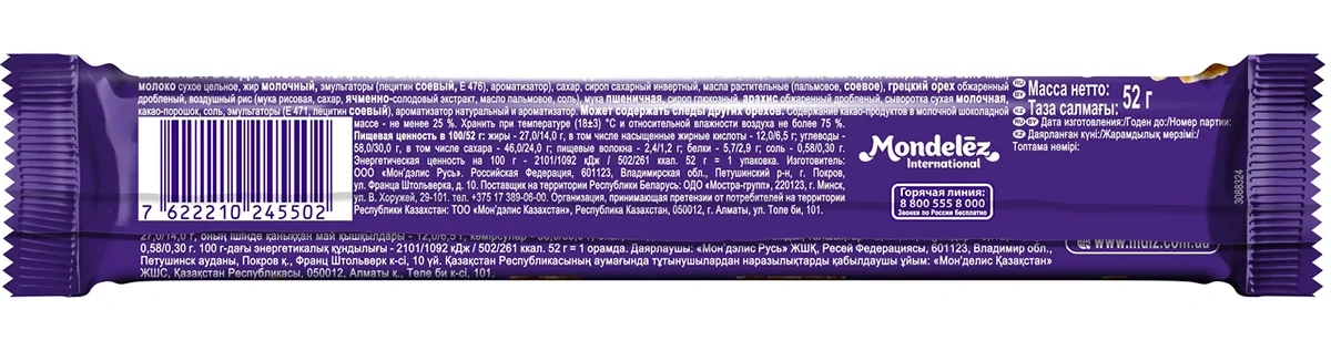 Батончик шоколадный Picnic с арахисом и карамелью, 76г