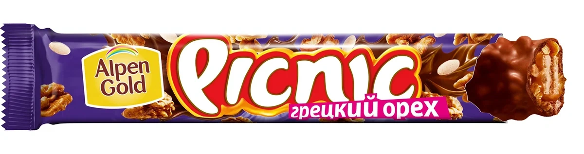 Батончик шоколадный Picnic с грецким орехом, 52г