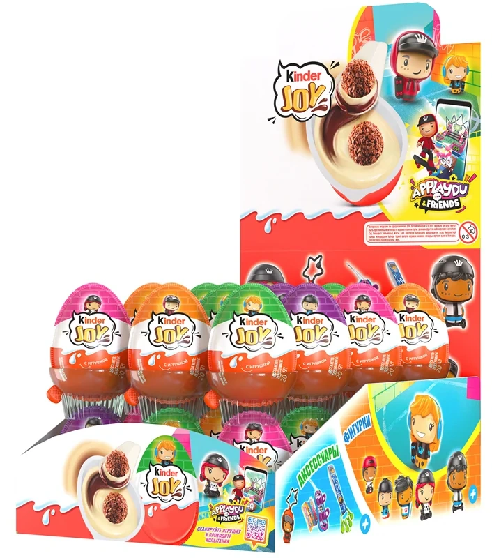 Kinder Joy - это невероятно вкусный снек, состоящий из двухслойной пасты на основе молока и какао, а также покрытых какао вафельных шариков с молочным кремом, с игрушкой внутри. Игрушки каждой коллекции Kinder Joy разработаны с учетом интересов и особенностей детей от 7 лет. В каждой коллекции вы найдете фигурки любимых персонажей, которые интересно коллекционировать, а также игрушки-гаджеты.