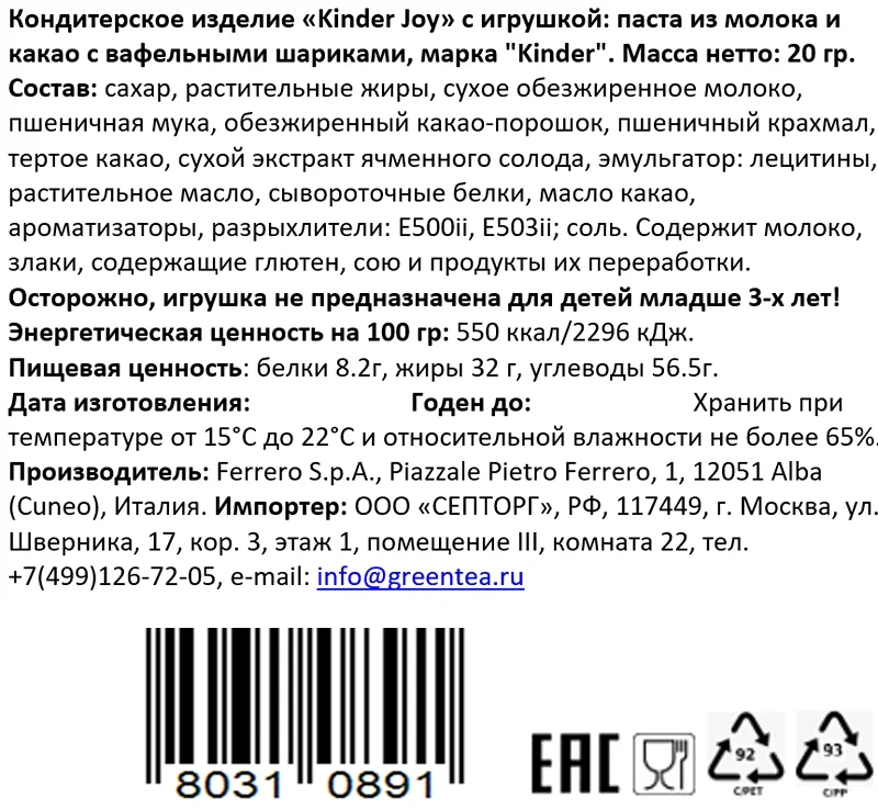 Энергетическая ценность, ккал/100 г