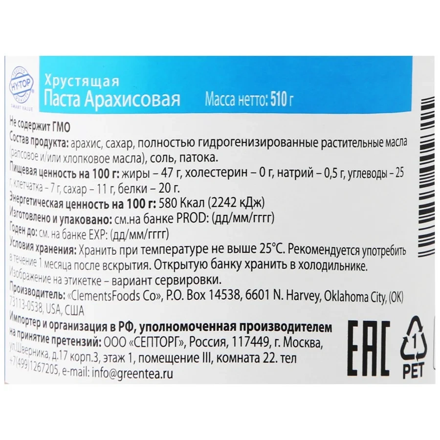 Паста Hy-Top арахисовая мягкая, 510г