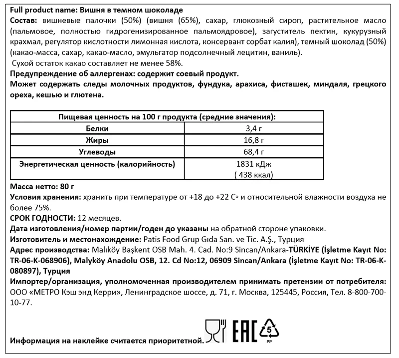 Содержание какао, %