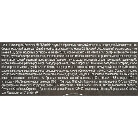 Упаковка Mars мини — это целый килограмм любимых батончиков, которые подарят гораздо больше наслаждения вам, вашим гостям, друзьям и близким. Пару конфет всегда можно положить в сумку и взять с собой. Уменьшенные варианты также удобны для тех, кто ограничивает потребление сладостей, позволяя себе небольшие порции удовольствия.
